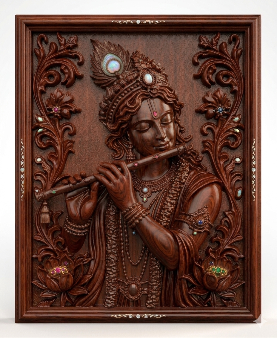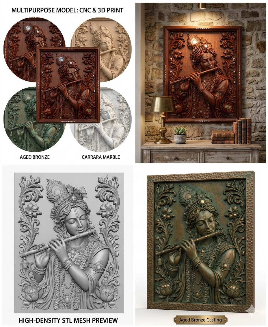 Divine Lord Krishna 3D STL Model – CNC Relief File